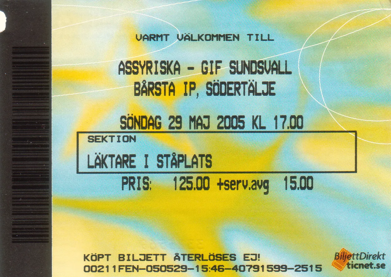 Assyriska Föreningen, wie der Verein offiziell heißt, wurde 1971 von assyrischen Einwanderern gegründet. 1974 meldete sich die Fußballabteilung zum offiziellen Spielbetrieb in der untersten Amateurliga, und hat sich seit dem sukzessive nach oben gespielt. Bereits 1992 gelang der erste Aufstieg in die zweithöchste Spielklasse. Zum Abschluss der Saison 2004 gab es dann den größten Vereinserfolg zu feiern - den Aufstieg in die Allsvenskan, die höchste schwedische Liga. Zwar durch einen Lizenzentzug begünstigt, doch Wirtschaften gehört heute nun mal dazu. Und jetzt spielen sie gegen Größen wie Hammarby IF und IFK Göteborg. Und sie sind verdammt stolz, als einziger „ausländischer“ Club in Europa in der höchsten Landesliga zu spielen. Das Barsta IP-Stadion ist ein eher bescheidenes Stadion. Es bietet rund 6.500 Zuschauern Platz. Sein früheres Leben als Sportplatz ist unverkennbar. Es gibt keine massiv gebauten Tribünen. Bis auf zwei überdachte Bereiche stehen die Fans auf provisorischen Holztribünen. Für die Bewirtung der VIPs stehen Baucontainer auf dem Vorplatz. Wenn man sieht, wie in der 1. und 2. Bundesliga die neuen Fußballtempel aus dem Boden gestampft werden, ist so ein Stadion schon erfrischend. Was so gar nicht dazu passt, sind die 15 Euro, die für einen Stehplatz zu berappen sind. Egal, ich buche es unter dem skandinavischen Preisniveau ab.Vor dem Spieltag befindet sich Assyriska, bei nur einem Sieg aus sieben Spielen, auf dem letzten Tabellenplatz. Zum heutigen Spiel gegen GIF Sundsvall, die in der Tabelle drei Plätze über Assyriska stehen, kommen gut 3.000 Zuschauer. Pünktlich zum Spielbeginn setzen aus dem recht überschaubaren, aber keinesfalls zu überhörenden Fanblock Trommelklänge ein, welche die 90 Spielminuten nicht verstummen sollten. Das hat was.