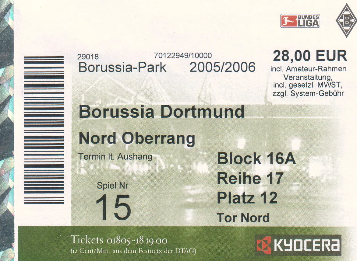 Es war mein erster Besuch im Stadion im Borussia-Park, d.h. es war ein weiterer Ground in meiner Sammlung. Er war: