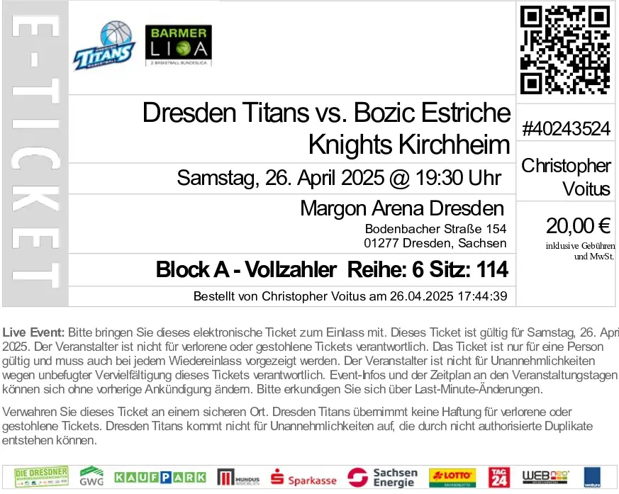 Letzter Spieltag in der zweiten deutschen Basketball-Liga. Die Titans aus Dresden stehen vor dem Spieltag auf Platz elf und haben somit keine Chance mehr, einen Playoff-Platz, also Platz acht, zu erreichen. Sie bewegten sich die gesamte Saison über in dieser Tabellenregion, und die Chance auf die Playoffs war lange vorhanden. Aber mit einer aktuellen Niederlagenserie von fünf Spielen – darunter zwei knappe Ein-Punkt-Niederlagen – ist das heute das letzte Saisonspiel.