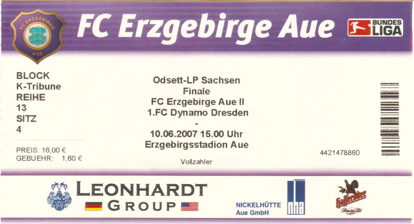 Es war mein erster Besuch im Erzgebirgsstadion, d.h. es war ein weiterer Ground in meiner Sammlung. Er war: