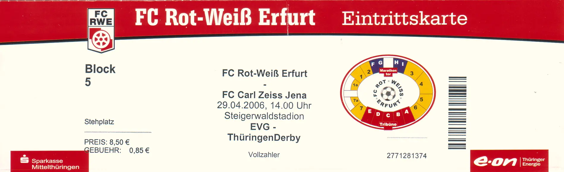 Es war mein erster Besuch im Steigerwaldstadion, d.h. es war ein weiterer Ground in meiner Sammlung. Er war: