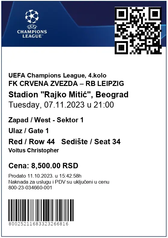 - Mein 2. Sportereignis im Stadion Rajko Mitić