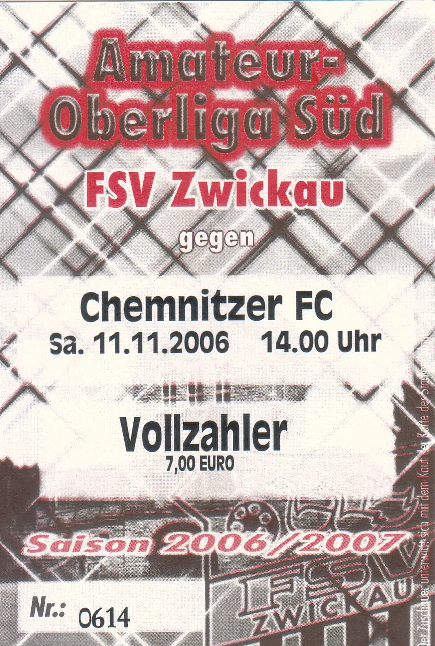 Dann folgte der eigentliche Anlass des Trips: Fußball. Also ab zum Westsachsenstadion. Dort angekommen, sah ich noch, wie der Chemnitzer Mob von der Polizei ins Stadion begleitet wurde. Der eigentliche Gästeblock wurde aufgrund von Baufälligkeit und der erwartet hohen Zahl an Gästefans gesperrt. Stattdessen durften die blau-weißen die komplette Gegengerade vereinnahmen. Und das Stadion ist unglaublich. Dass die Stadt kein Geld hat, das Stadion zu sanieren, hatte ich schon gehört. Aber dass ein Stadion so verramscht sein kann, hätte ich nicht gedacht. Die originalen Sitzplätze sind vergammelt, stattdessen ist fast das ganze Stadionrund mit Stahlrohrtribünen bebaut. Das hat definitiv seinen ganz eigenen Charme. Und ich bin vollends begeistert – die Reise hat sich gelohnt. Vor der Zwickauer Saisonrekordkulisse von knapp 3.000 Zuschauern ging es für den FSV um wichtige Punkte gegen den erneuten Abstieg, während der CFC die Zähler für den möglichen Wiederaufstieg benötigte. Schon nach sieben Minuten nutzte Kellig einen Querschläger und es stand 0:1. Nach der Pause drängte Zwickau den Ausgleich und wurde in der 67. Minute durch Arzt belohnt. Im Gegenzug flogen drei Raketen aus dem Zwickau-Block direkt in den CFC-Block. Daraufhin unterbrach Schiedsrichter Mattig die Partie. Nach vorherigem Zünden von Feuerwerkskörpern hatte der Schiri die Fans bereits ermahnen lassen. Pyros im Block finde ich stimmungsmäßig genial, aber als Geschosse gegen andere sind sie fehl am Platz. Und es war ein Bärendienst der eigenen Anhänger. Der FSV war am Drücker, die drei Punkte waren möglich und dann so etwas. Na ja, zum Glück konnten die Gemüter nochmal beruhigt werden und die Partie später doch fortgesetzt werden. Nichts mehr passiert. Erstaunlich fand ich, was die Medien aus diesem Spiel gemacht haben. Bekannte und Verwandte erkundigten sich besorgt, ob mir bei den wilden Ausschreitungen was passiert sei. Die Zeitungsberichte haben mir später richtig Angst gemacht. Ich konnte anscheinend froh sein, dies unbeschadet überstanden zu haben. Ich glaube, da gab es Wahrnehmungsdifferenzen zwischen mir und denen, die darüber berichteten. Bin ich wahrnehmungsreduziert, oder war von den Schreibern etwa keiner im Stadion? Was wird wohl berichtet, wenn es tatsächlich mal Ausschreitungen gibt?Als Reaktion auf die aus den eigenen Reihen abgeschossenen Raketen trat Zwickaus Präsident direkt nach dem Spiel zurück. Und der NOFV belegte den FSV mit einem Spiel unter Ausschluss der Öffentlichkeit.