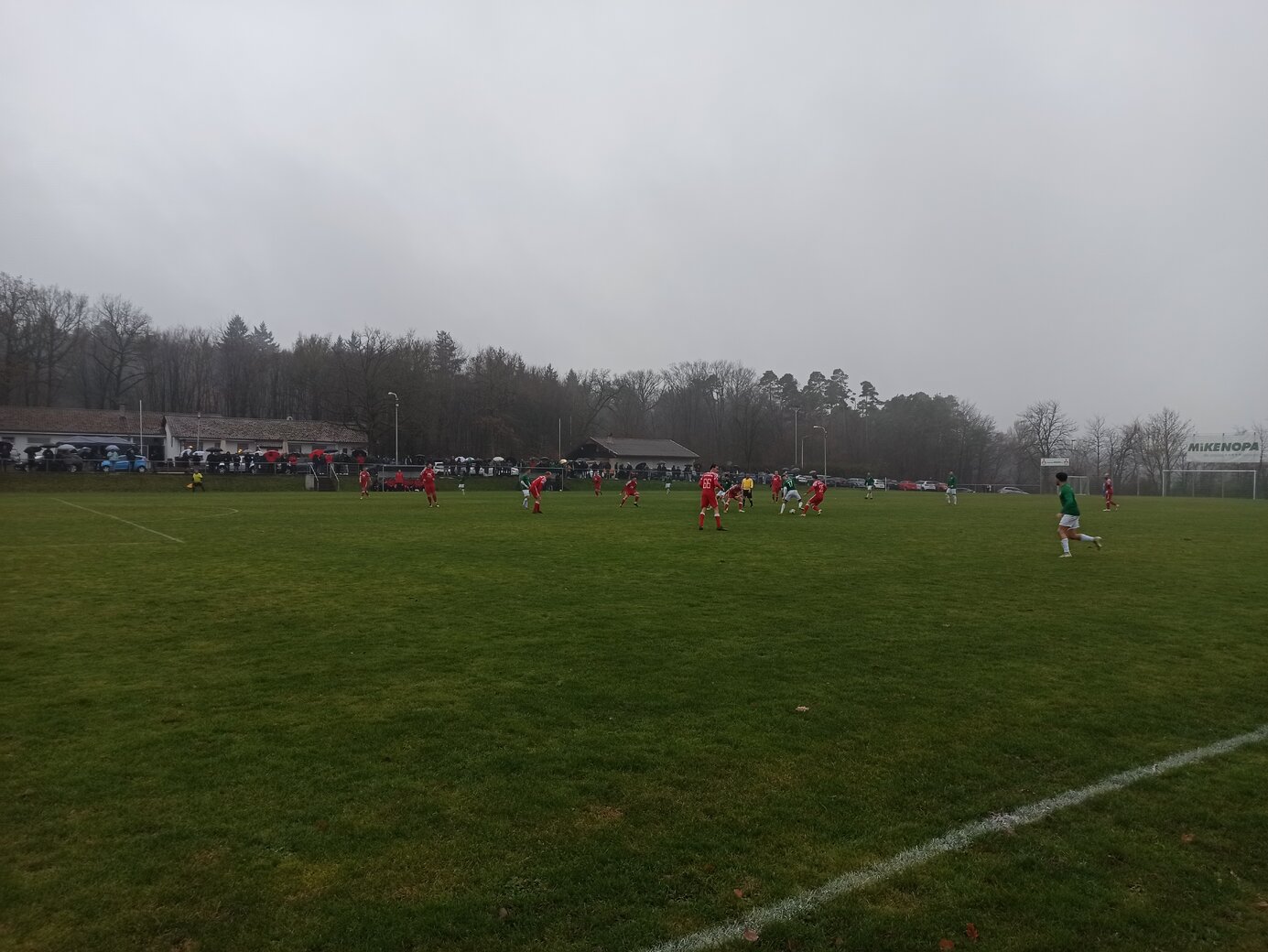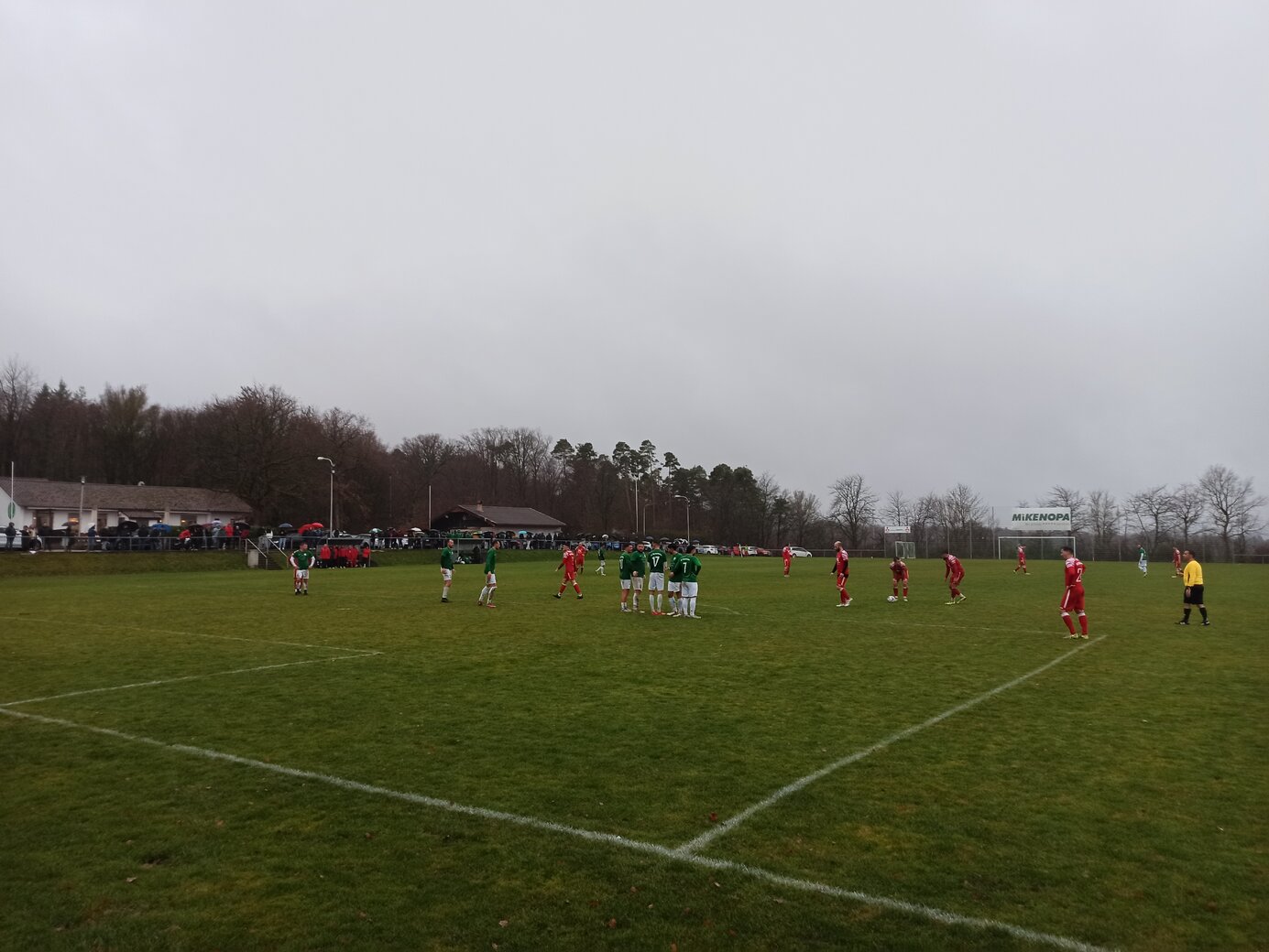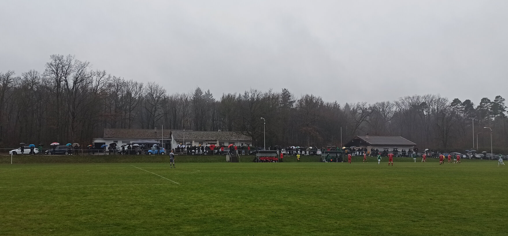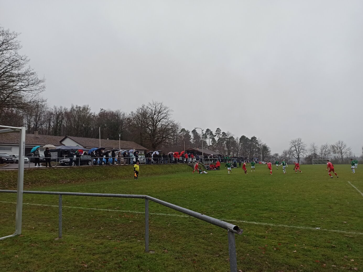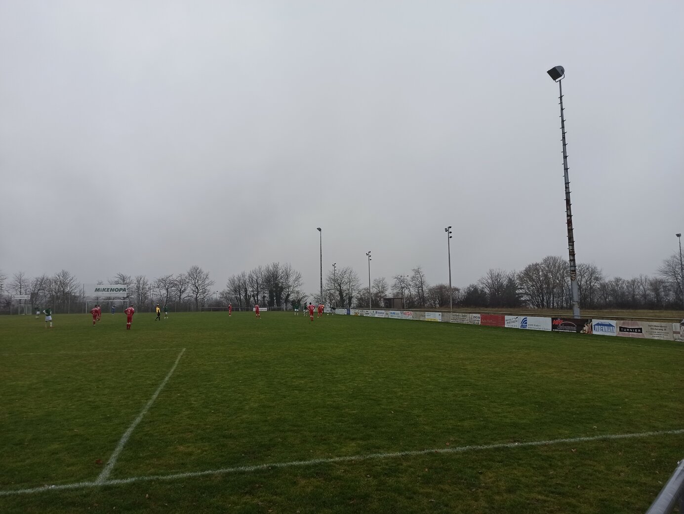 Beim zugegebenermaßen nerdigen Versuch der Komplettierung irgendeiner Kreisliga reicht der allgemeine Besuch der Anlage nicht aus. Es muss jeweils der Hauptplatz sein, sonst gibt es auf den einschlägigen Portalen keinen grünen Haken. Und bei Öschelbronn? futbology führt den oberen Ground, europlan den unteren Ground als Hauptplatz. (Witzigerweise heißt bei europlan der aktuelle Hauptplatz trotzdem noch Herrenwaldstadion Nebenplatz.) Damit ist Öschelbronn zu 50 % abgehakt. Und somit gut möglich, dass ich hier nochmal herkomme. Das heutige Spiel zwischen dem Tabellendritten FV Öschelbronn und dem Tabellenfünfzehnten 1. FC Nußbaum ging direkt hitzig los. Ein Öschelbronner Spieler foulte nach einer Minute so derbe, dass der Nußbaumer Spieler nach längerer Behandlungspause direkt ausgewechselt werden musste. Aus meiner Sicht war das Rot, aber der Schiedsrichter beließ es bei Gelb. Öschelbronn hat in den bisherigen 17 Spielen 34 Punkte gesammelt und kämpft aktuell mit Birkenfeld um den Relegationsplatz. (Conweiler-Schwann ist als Tabellenführer schon deutlich enteilt.) Nußbaum steht tief in der Abstiegszone und hat gerade mal zwölf Punkte auf dem Konto. Der Punkteunterschied war anfänglich nicht sichtbar. Ich fand die Gäste sogar besser. Allerdings war Öschelbronn sehr effektiv und brauchte nur zwei Chancen, um 2:0 in Führung zu gehen. Dann kippte das Spiel und Öschelbronn kam zu weiteren Chancen, traf jedoch nicht. In der Nachspielzeit der ersten Halbzeit gelang Nußbaum der Anschluss. Ein Heimzuschauer meinte: “Wir müssen 4:0 führen und gehen stattdessen mit 2:1 in die Pause.” Und nach gut einer Stunde erzielte Nußbaum Ausgleich. Ab dann war es ein Spiel, das beide gewinnen wollten und konnten. Doch es blieb beim Unentschieden.Fazit: Kühles verregnetes Dezemberwetter, eine schöne Anlage und ein spannendes Spiel. Schöner Ausflug.