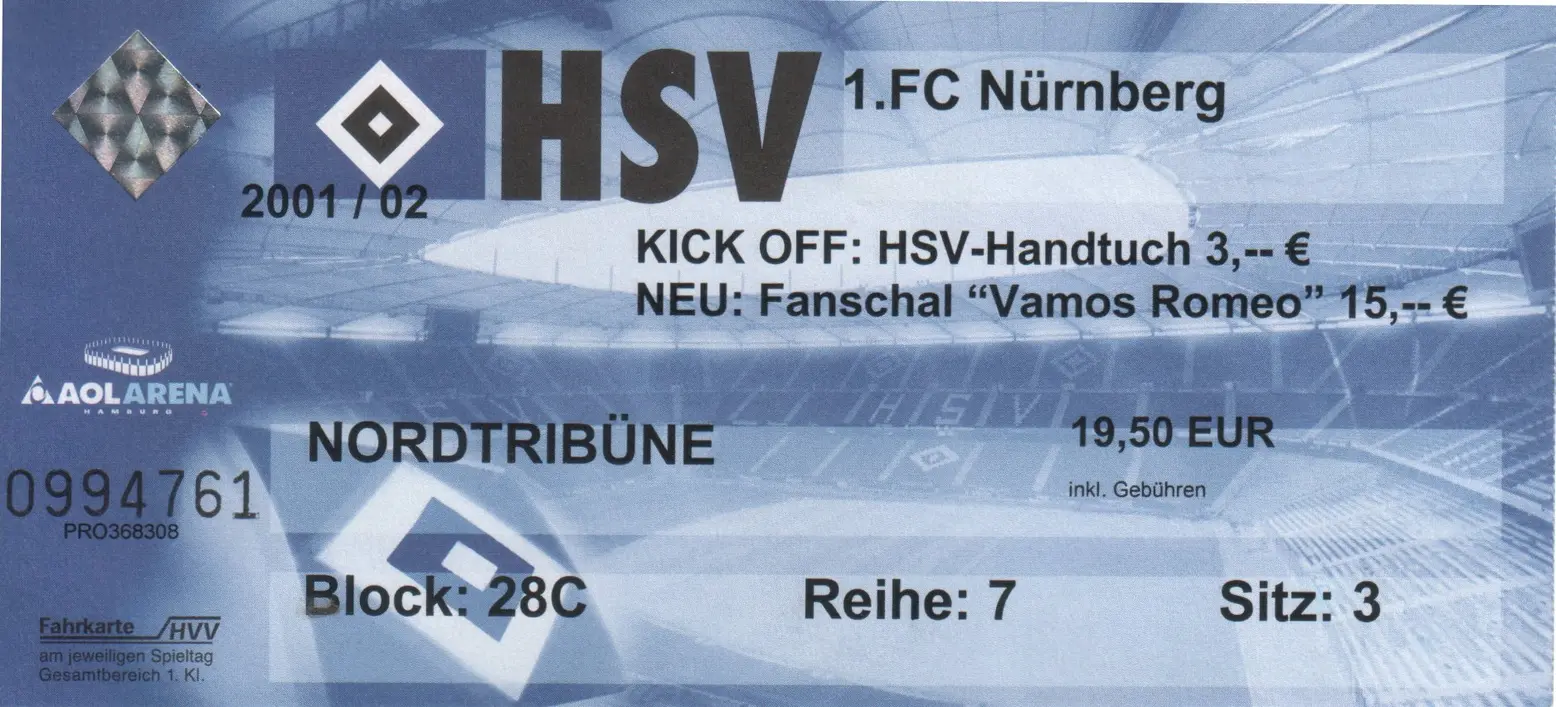 Willkommen im Zeitalter der modernen Arenen. Und willkommen im Zeitalter der bekloppten Stadiennamen. Ich weiß, bereits früher haben sich die Leute über die Kommerzialisierung durch Brustwerbung und den Verlust der Ehre durch Zahlung von hohen Gehältern und Ablösesummen aufgeregt. Der Verkauf des Stadionnamens ist nur ein weiterer Schritt. In fünf bis zehn Jahren hat das jeder und es ist ganz normal. Aktuell finde ich es trotzdem befremdlich. Und deswegen werde ich es vorerst weiter Volksparkstadion nennen ... bis die Gewöhnung eingesetzt hat. (Nachtrag 2010: Nichts ist für immer. Wenn man sich dran gewöhnt hat, heißt das Ding schon wieder anders; erst "HSH Nordbank Arena" und aktuell "Imtech Arena". Aber was soll's - die Brustwerbung wechselt auch jedes Jahr. Nachtrag 2015: Kaum zu glauben, aber es gibt das Volksparkstadion wieder.)