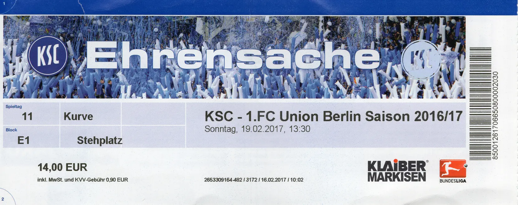 - ballreiter Teilzeitarbeiter: KSC vs 1. FC Union Berlin 1:2 - 19.2.2017
