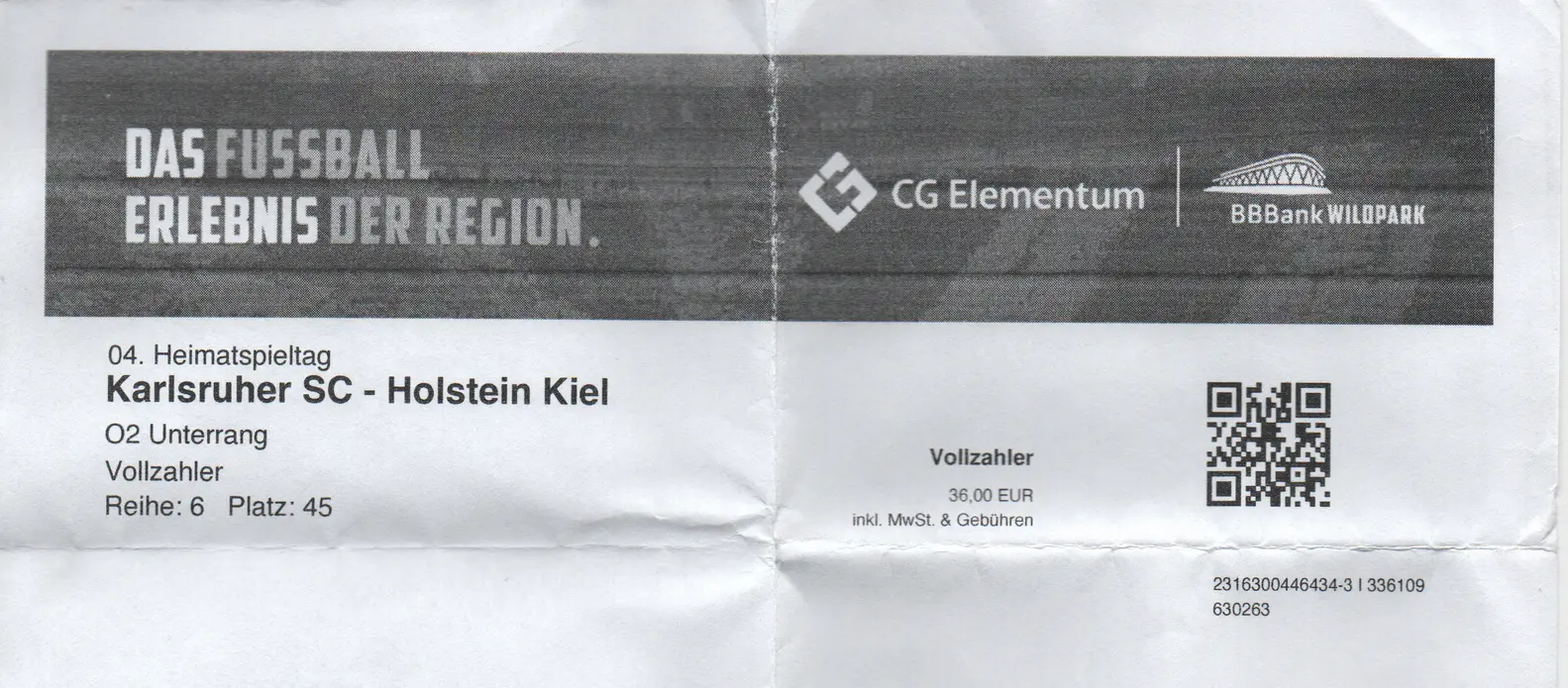 Es war mein erster Besuch im Wildparkstadion, d.h. es war ein weiterer Ground in meiner Sammlung. Er war: