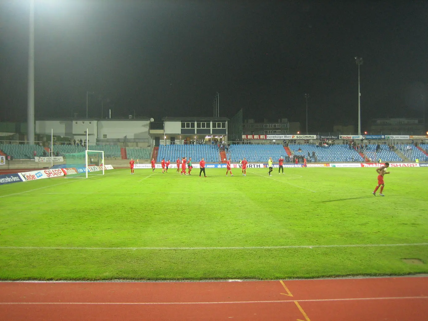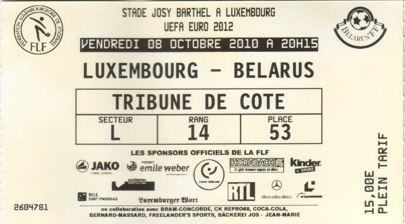 Die Weißrussen fingen engagiert an und kamen zu einigen Torchancen. Folgende Floskel beschreibt den weiteren Spielverlauf dann treffend: "Und mit zunehmender Spieldauer verflachte das Spiel". Zum Ende des Spiels besaßen die Luxemburger sogar die große Chance zum Sieg. Am Ende stand jedenfalls die 0 für beide Teams. Luxemburg hatte den ersten Punkt in dieser Qualifikation erobert und für Weißrussland wird es ein ganz weiter Weg zu einer möglichen Qualifikation.Um meine Unterstützung mit den Weißrussen kund zu tun, wollte ich mich in den Gästeblock setzen/stellen. Ich hatte das Stadion zweimal umrundet und einige Leute nach der Lage des Gästeblocks befragt. Mir schlug eine Mischung aus Unverständnis und Unwissen entgegen. Ist das Konzept von Heim- und Gästeblock im Luxemburgischen Fußball nicht verankert? Den Weißrussischen Fans ging es wohl auch so. Zu Spielbeginn waren sie auf zwei entgegengesetzte Blöcke verteilt. Aber wie ich, hatte sich die stimmungsfreudige Mehrheit dann wohl den Block mit dem besten Preis/Leistungsverhältnis gesucht und ich war schließlich dort wo ich sein wollte.
