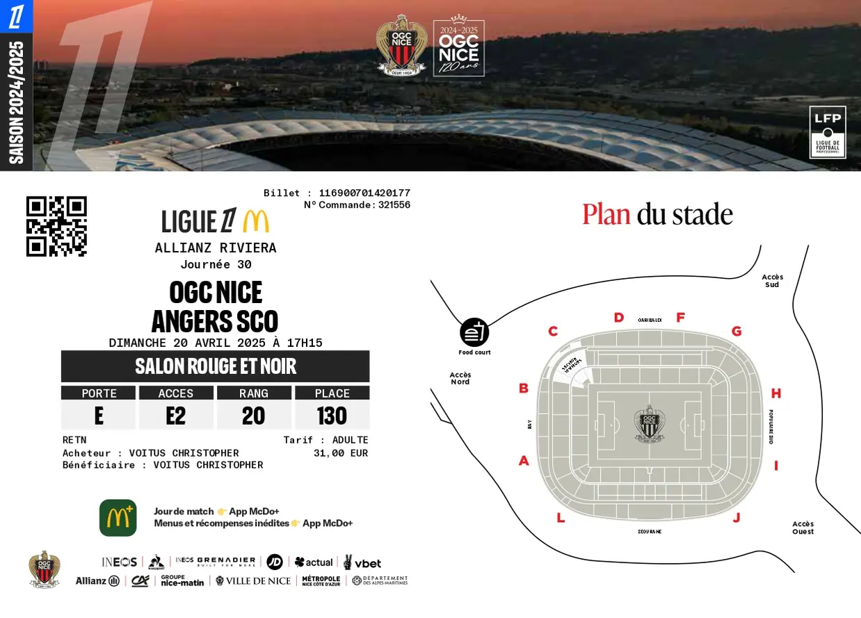 Wir haben uns zur Feier des Tages (mein Sohn hatte Geburtstag) Tribünenkarten im Mittelrang gegönnt. Nobel geht die Welt zugrunde. Es ist nach dem Estádio da Luz das zweite Mal, dass ich mit einem Aufzug zum Block gefahren bin. Genau genommen nicht in den Block, sondern zum Salon Rouge et Noir. Im Salon befinden sich die Verpflegungsstände und Stehtische. Durch eine Tür in der Glasfront geht es dann zu den Plätzen. Die Sitze im kompletten Stadion haben einen gehobenen Standard, aber wir hatten Sitze mit Armlehnen (!) - im Fußballstadion (!). Verrückt. Aber nein, wir waren nicht in der VIP-Lounge. Unsere Karten gab es für 31 €. Für Nizza ist das eine teurere Kategorie, aber in Deutschland zahlt man selbst für die schlechtesten Plätze hinter dem Tor mehr. Genau solche Ausstattung hatte Sepp Blatter wohl im Sinn, als er 2012 Fußball mit einem Opernbesuch verglich. Zum Sportlichen. Der OGC Nice befand sich vor dem 30. Spieltag auf dem siebten Tabellenplatz und damit zwei Punkte hinter dem ersten internationalen Platz. Der SCO Angers stand als letztjähriger Aufsteiger auf Platz 14, drei Punkte über dem Relegationsplatz. Heute ging es somit für beide Teams um wichtige Punkte. Nizza war klar spielbestimmend und konnte die Überlegenheit in zwei Tore ummünzen. Angers war ziemlich harmlos. Nizza hatte anscheinend Mitleid und hat ihnen durch einen unbedrängten Fehler im Aufbauspiel ein Tor geschenkt. Manchmal ist es schon verrückt im Fußball. Nizza ist 90 Minuten klar überlegen. Im Handball und Basketball wären spätestens nach ⅔ der Spielzeit die Messen gesungen. Doch Nizza musste bis zum Schlusspfiff zittern, um diese hochverdienten drei Punkte einzufahren. Ging ja am Ende gut und somit rückt die Tabellenspitze der Ligue 1 noch enger zusammen. Stimmungsmäßig war es ein gutes Brett der Ultras Populaire Sud. Das war dann schon ein paar Nummern über Monaco gestern. Aus dem 1000 km entfernten Angers waren 25 Gäste angereist. Sie haben ein paar Fahnen geschwenkt und gesungen. Durch die Nähe zu den Heimfans und der Entfernung zum Gästeblock habe ich sie jedoch eher optisch als akustisch wahrnehmen können.Fazit: Ist halt ein modernes Stadion mit begrenztem Flair. Aber einmal kann man es sich auf jeden Fall anschauen.