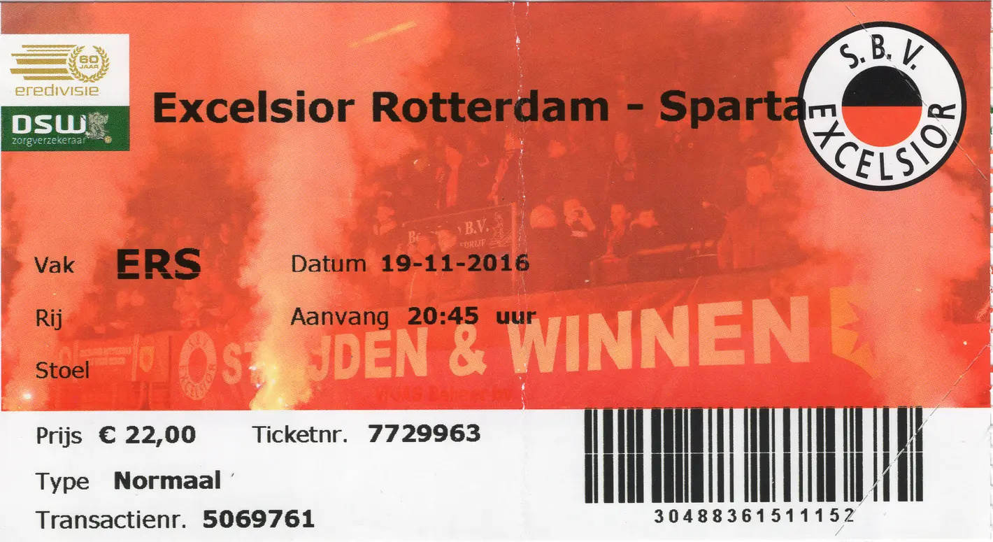 Eigentlich gab es für dieses Rotterdamer Stadtderby nur Tickets, wenn man im Besitz einer Excelsior Clubcard ist. Die Clubcard besitze ich natürlich nicht und hab trotzdem mal nett beim Verein angefragt. Und wie es so ist, manchmal hat man einfach Glück und so hat mir der Verein ein Ticket für den Spieltag hinterlegt.