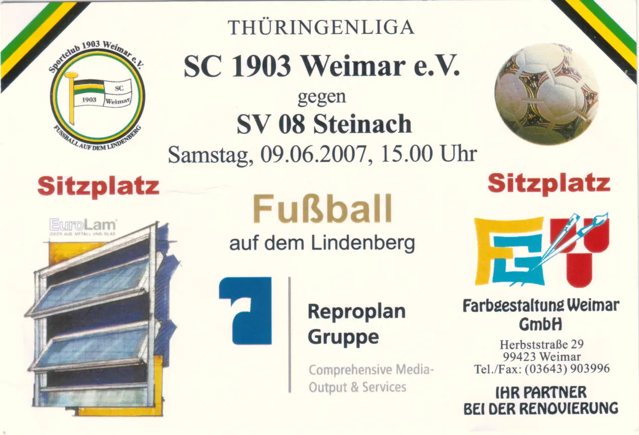 Der SC 1903 Weimar kämpfte noch um seine beste Platzierung in dieser Liga seit dem Oberligaabstieg 1996/97. Es galt den SV Schott Jenaer Glas vom dritten Platz zu verdrängen. Um das zu erreichen bedurfte es eines eigenen Sieges gegen den SV Steinach, bei gleichzeitiger Niederlage der Jenaer gegen den Aufsteiger aus Gera.