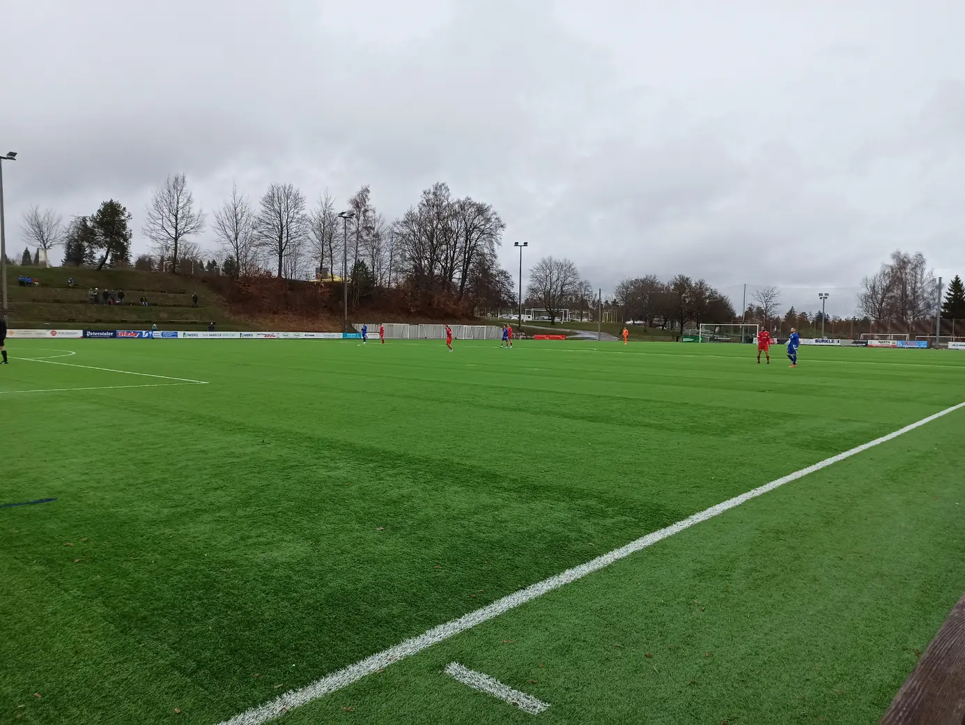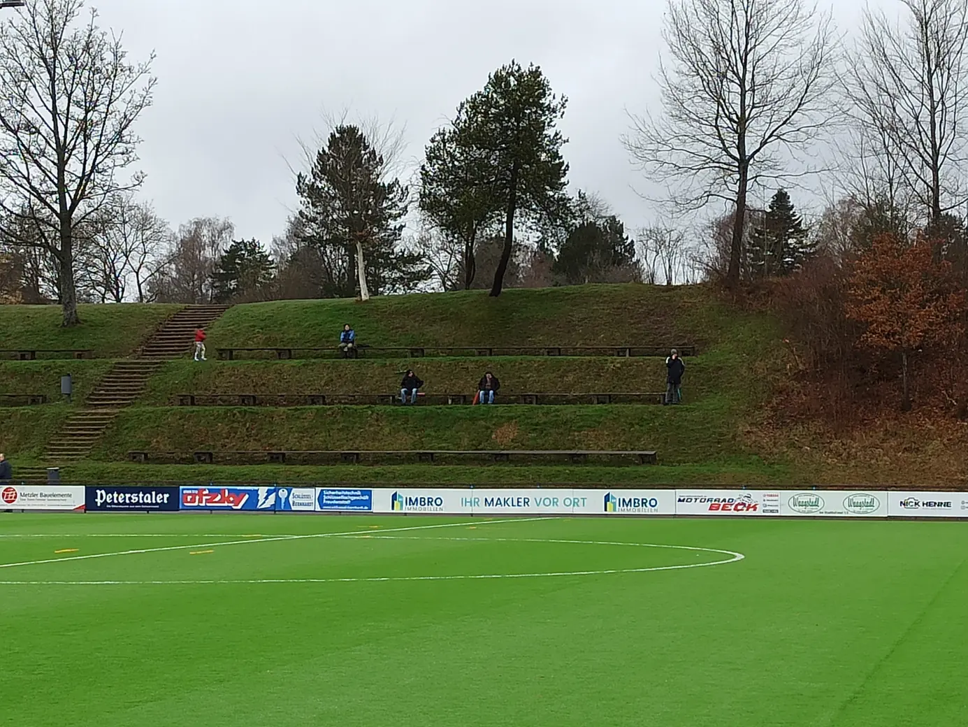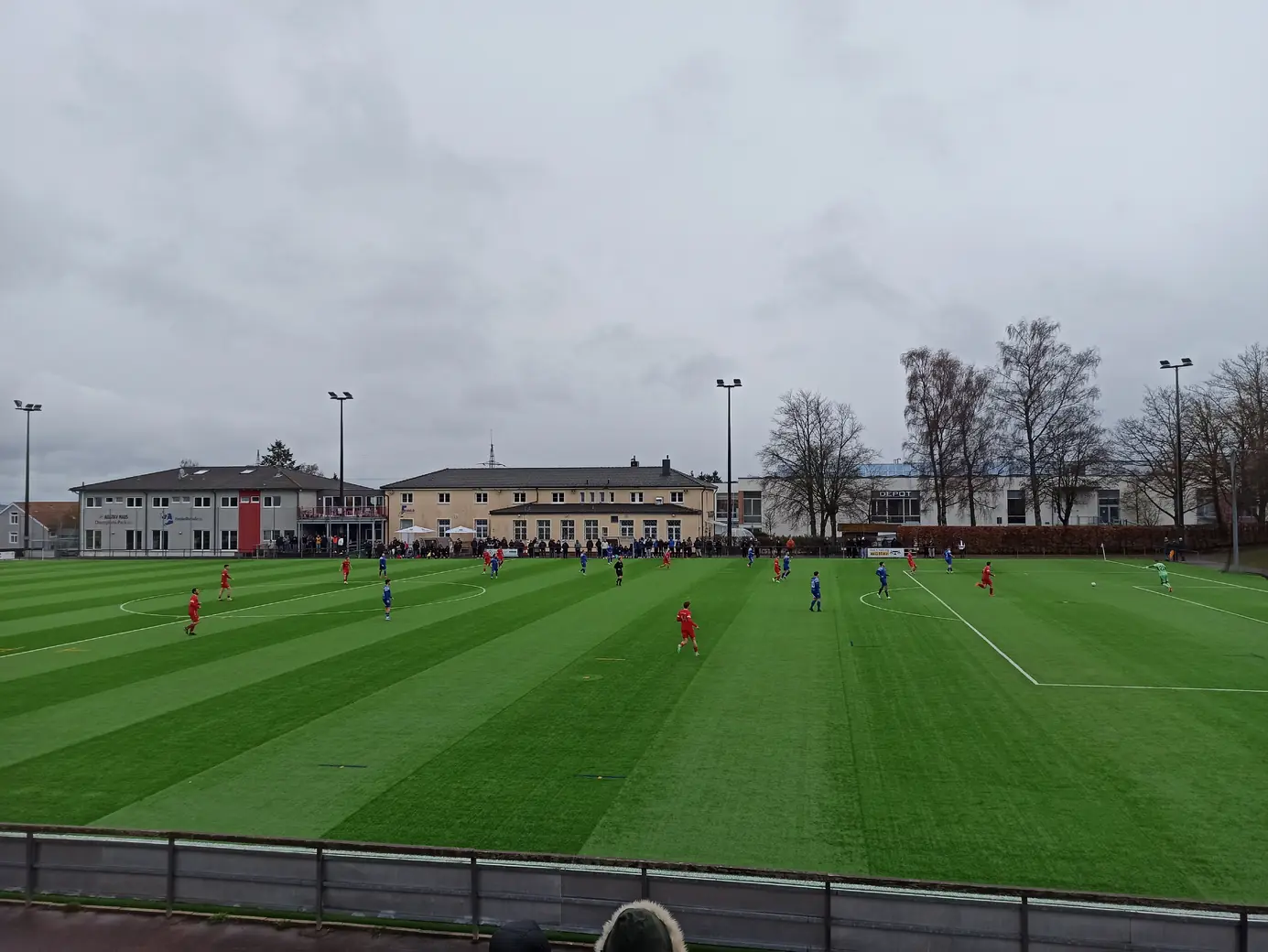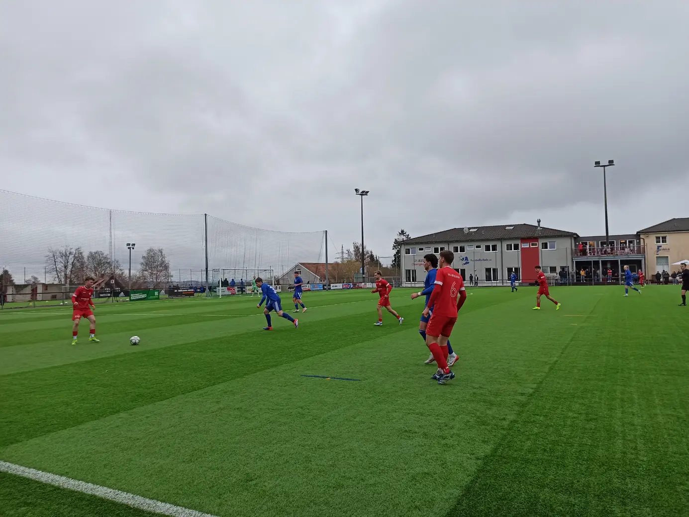 Die Spvgg Freudenstadt trägt ihre Spiele im Champions Park aus. Der Champions-Park ist ein Sport- und Freizeitzentrum, das Trainingslager für Mannschaften in fast allen Sportarten, Camps, Schullandheime sowie Events und Turniere anbietet. Zur Anlage gehören ein Rasen- und ein moderner Kunstrasenplatz (beide mit FIFA-Maßen von 105 x 68 Meter), Beach-Felder, Soccer-Courts, ein Hallen- & Freibad sowie zwei Sporthallen. Während der EM 2024 hat die dänische Nationalmannschaft den Champions Park in Freudenstadt als Trainingsstandort genutzt. Laut Aussage des Kassierers spielt die Spvgg Freudenstadt wetterabhängig sowohl auf Rasen als auch auf Kunstrasen. Nachdem ich auf der Anreise durch Schneetreiben gefahren bin, war natürlich klar, dass die heutige Partie auf Kunstrasen stattfinden wird. Das hatte ich eingeplant und auch dieser Platz ist definitiv ein sehenswerter Ground. Sehr schön ist der recht steile Hang an einer Längsseite, auf dem sich drei Reihen mit Bänken befinden. Zum einen sieht das von der Gegenseite nach was aus, zum anderen hat man als Zuschauer von dort bei der erhöhten Lage eine perfekte Sicht aufs Spiel. Apropos Spiel. Das Spiel startete mit einer Großchance von Freudenstadt. Ein Fernschuss, den der Mühlheimer Keeper niemals erreicht hätte, drehte sich an den Innenpfosten, lief vor der Torlinie entlang und wurde dort geklärt. Ab dann übernahm der VfL Mühlheim die Initiative und war spielbestimmend. Nachdem es noch torlos in die Halbzeitpause ging, konnte Mühlheim nach gut einer Stunde durch einen Elfmeter in Führung gehen. In der 84. Minute folgte das 0:2, was angesichts der Spielanteile wie die Entscheidung wirkte. Aus dem Nichts kam Freudenstadt zwei Minuten vor Ende der regulären Spielzeit zum Anschlusstreffer, was zu einer hektischen Schlussphase führte. Am Ende blieb es beim Auswärtssieg.Das Wetter war mal wieder eine Mischung aus Wind, Regen und Schneeregen, bei knapp über 2° C. Gemütlich.