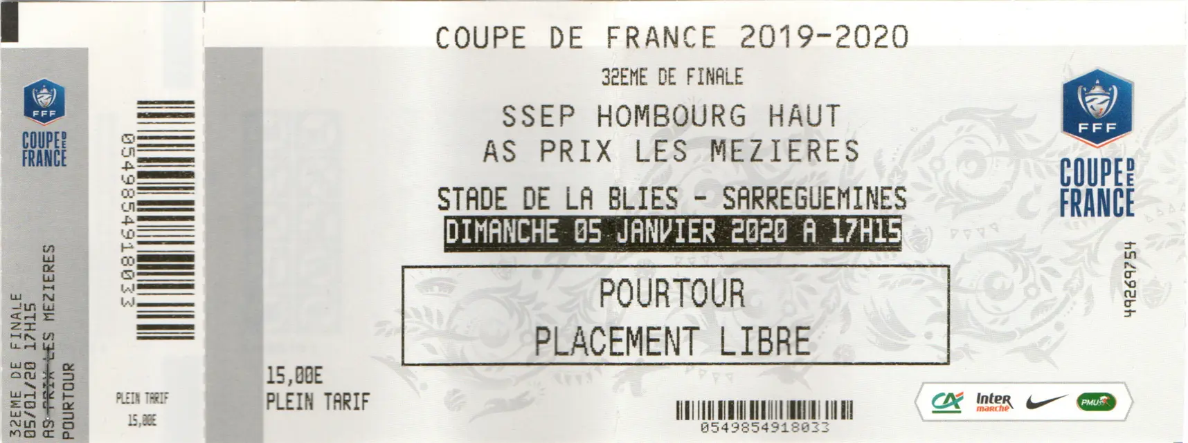 Das Schöne am französischen Pokal ist, dass alle Mannschaft des Landes teilnehmen. Am Anfang der Saison spielen die unterklassigen Mannschaften gegen regionale Konkurrenten und nach und nach steigen die höherklassigen Teams ein. Kurz nach dem Jahreswechsel nun die 9. Runde und mit SSEP Hombourg-Haut ist noch ein 8-Ligist vertreten. Eine Runde vorher hatten sie AJ Auxerre mit 2:1 besiegt. Nun ist mit AS Prix-lès-Mézières ein Fünftligist zu Gast. Irgendwie undankbar. Ein Spiel gegen einen Fünftligist hat wenig Potential für ein unvergessliches Fußballfest. Aber der Gegner spielt drei Klassen höher und somit die Wahrscheinlichkeit des Weiterkommens eher gering. Dass es kein Fußballfest werden kann nehme ich zurück. 2.800 Zuschauer für ein solches Spiel war großes Kino. Und die Heimfans haben mit toller Stimmung ihr Team unterstützt. Das hatte ich so von einem Achtligisten nicht erwartet. Am Ende gab es sogar Beifall von den Gästespielern dafür. Wie schon in der vorherigen Runde wurde das Spiel im Stade de la Blies (Sarreguemines), Heimstadion des Sarreguemines FC und eine halbe Stunde von Hombourg-Haut entfernt, ausgetragen. Hinter der Gegengerade fließt die Blies, ein Grenzfluss zu Deutschland. Das Spiel war leider begrenzt spannend. Prix-lès-Mézière mit einem schnellen Tor und kurz vor der Pause mit den zweiten. Hombourg-Haut hatte hier und da Chancen, aber der Klassenunterschied war schon sichtbar. Am Ende ein verdienter Sieg für Prix-lès-Mézière.