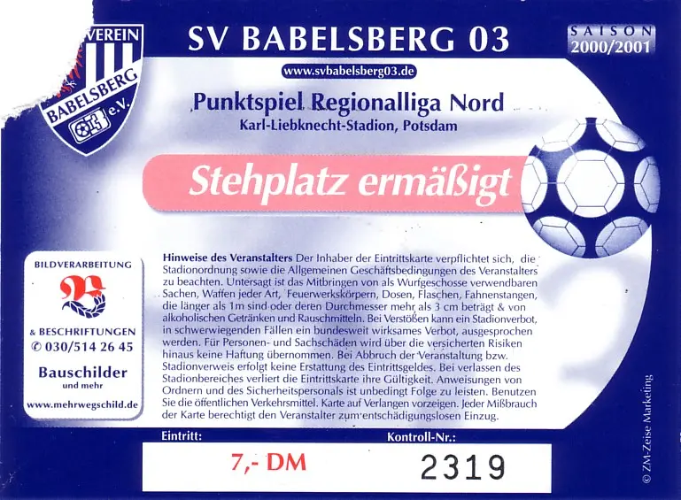 Es war mein erster Besuch im Karl-Liebknecht-Stadion, d.h. es war ein weiterer Ground in meiner Sammlung. Er war: