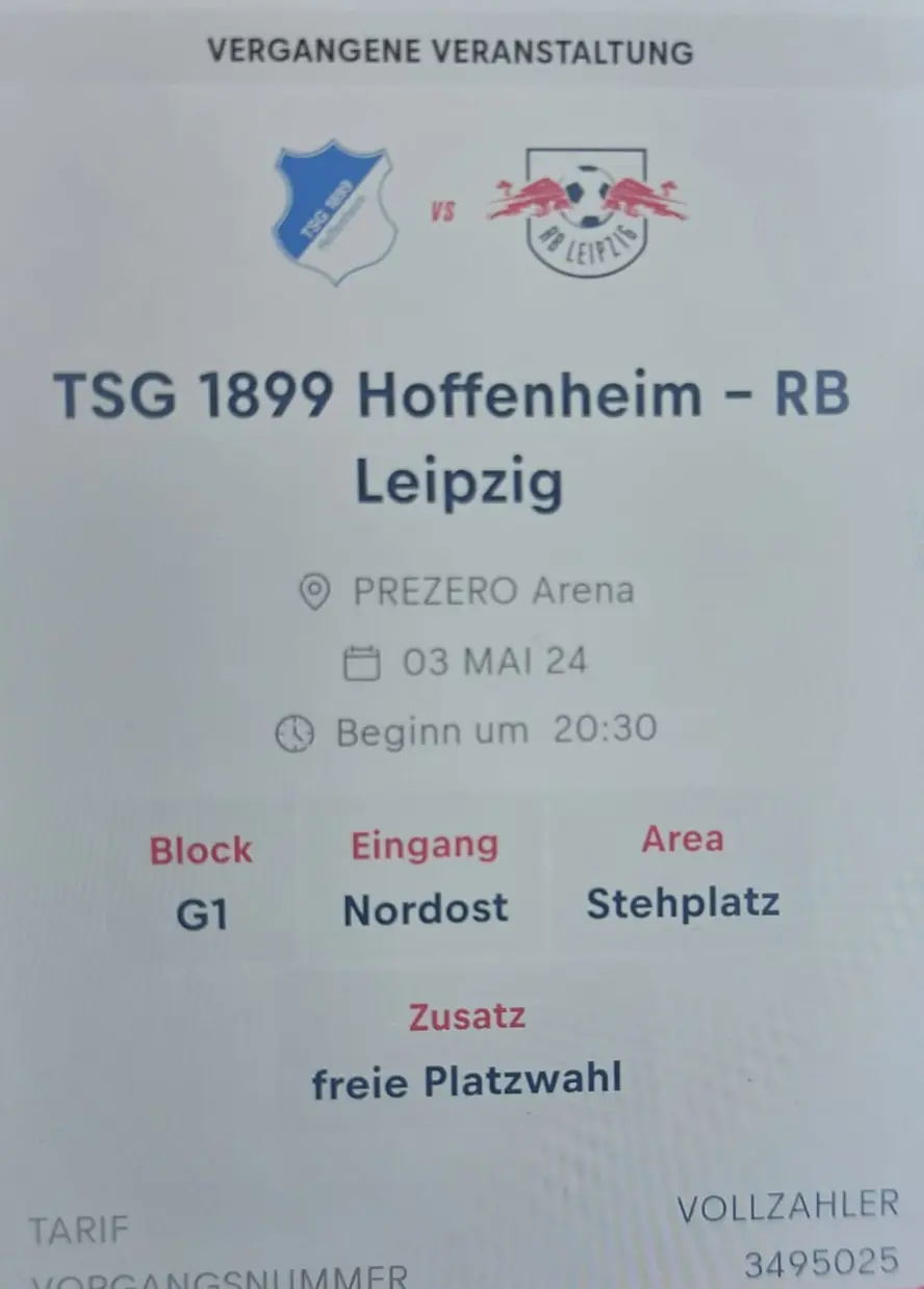 Auch spannend fand ich das Verkaufsfenster. Das Spiel fand am Freitag statt. Ende des Verkaufes war der Sonntag davor. Warum? Das macht doch keinen Sinn. Ich kam zum Glück am Sonntag auf die Idee hinzugehen und habe mir dann hektisch die sechs Tickets geholt. Aber hätte ich Montag den Einfall gehabt, wäre es zu spät gewesen. Warum genau macht man sowas? Und in einer der letzten Saisons, bei dem der Gästeblock auch nur zu Hälfte gefüllt war, blieb in Hoffenheim die Tageskasse geschlossen. Leute, die vor Ort waren, mussten draußen bleiben, obwohl drinnen 1000 freie Plätze waren. Das gleiche einmal beim Spiel in Freiburg. Das Einzige, was ich mir vorstellen kann, sind Sicherheitsbedenken. Also dass bei geöffneter Tageskasse hunderte „Fans“ anderer Vereine den RB Gästeblock stürmen und Ärger machen. Aber das erscheint mir eher abwegig. Na ja, ich hab jedenfalls alle Kosten und Mühen auf mich genommen und konnte somit das Highlight der Fußballgeschichte sehen. Sportlich ging es für RB um nicht mehr viel. Nur noch, ob sie die Saison auf Platz vier oder fünf beenden. Dadurch, dass die Bundesliga kommende Saison fünf Champions League Startplätze hat, ist das am Ende recht egal. Vor Borussia Dortmund zu stehen ist schon erstrebenswert, aber so richtig juckt es dann doch nicht. Für Hoffenheim geht es hingegen um die internationalen Startplätze. Von Champions League bis Nicht-Europäisch ist noch alles drin. Also die brauchen dringend Punkte. Das Spiel war dann auf mäßigem Niveau. Wenig Torchancen und ein irgendwie zerfahrenes Spiel. RB war trotzdem besser und ging zum Ende der ersten Halbzeit durch Sesko in Führung. Die zweite Halbzeit sah so aus, also wenn RB die Führung locker herunterspielen. Doch dann holte sich Xavi in der 72. Minute die Gelb-Rote Karte ab. Einmal Ball wegschießen und eine sinnlose Grätsche im Mittelfeld und er durfte Duschen gehen. So unnötig. Und so kam es, wie es kommen musste, in der Nachspielzeit drückte Kramaric den Ball zum Ausgleich über die Linie. Das war dann ein etwas enttäuschender Schluss auf ein eher langweiliges Spiel.Fazit: Ein entspannter Ausflug mit Freunden und Familien. Auch wenn das Spiel an sich nicht so viel hergab, hat das mal wieder voll Spaß gemacht