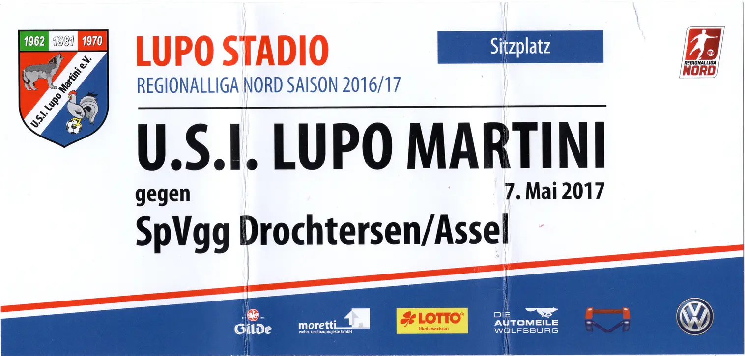 USI Lupo-Martini Wolfsburg gegen SV Drochtersen/Assel, das sind Vereinsnamen, die auf der Zunge prickeln. Laut Wikipedia ist Lupo-Martini der älteste von Gastarbeitern in Deutschland gegründete Verein. Genauer gesagt die Hälfte davon. 1962 gründeten italienische Einwanderer den ISC Lupo (“Lupo” bedeutet im italienischen “Wolf”). Sie nahmen am offiziellen Spielbetrieb und hatten regelmäßig um die 1000 Zuschauer. Nachdem mehr und mehr italienische Gastarbeiter nach Wolfsburg kamen, kam es mit dem U.S. Martini zu einer zweiten Vereinsgründung durch Einwanderer. Nicht überraschend bildete sich eine gewisse Rivalität zwischen ihnen. Nichtsdestotrotz fusionierten beide Vereine 1981 zum heutigen USI Lupo-Martini Wolfsburg, mit dem Ziel die Kräfte zu bündeln und höherklassig zu spielen. 2016 wurde Lupo mit 19 Punkten Vorsprung Meister der Oberliga Niedersachsen und stieg in die Regionalliga Nord auf.