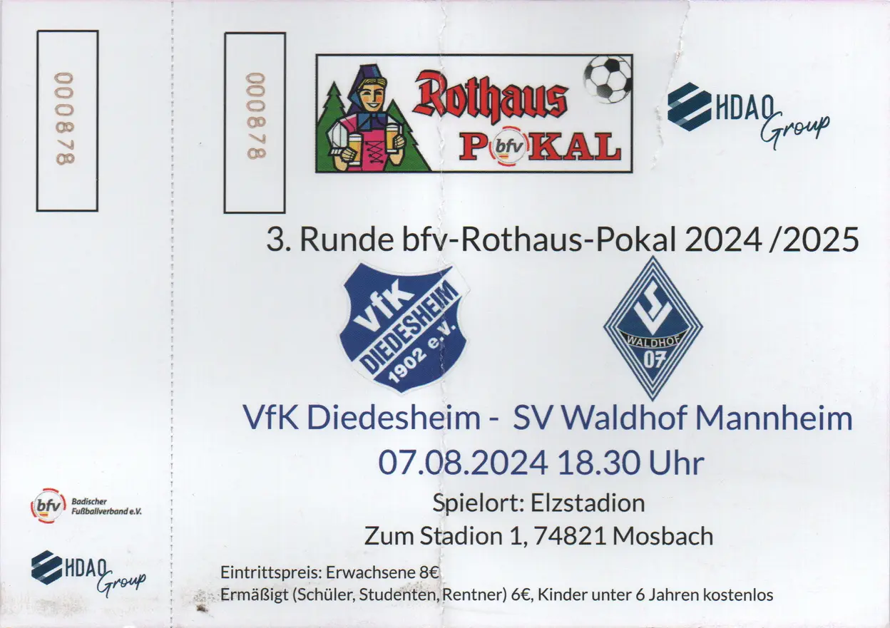 - Sport Kurier Mannheim 7:1 gegen VfK Diedesheim – Der SV Waldhof steht im Achtelfinale des Badischen Pokals