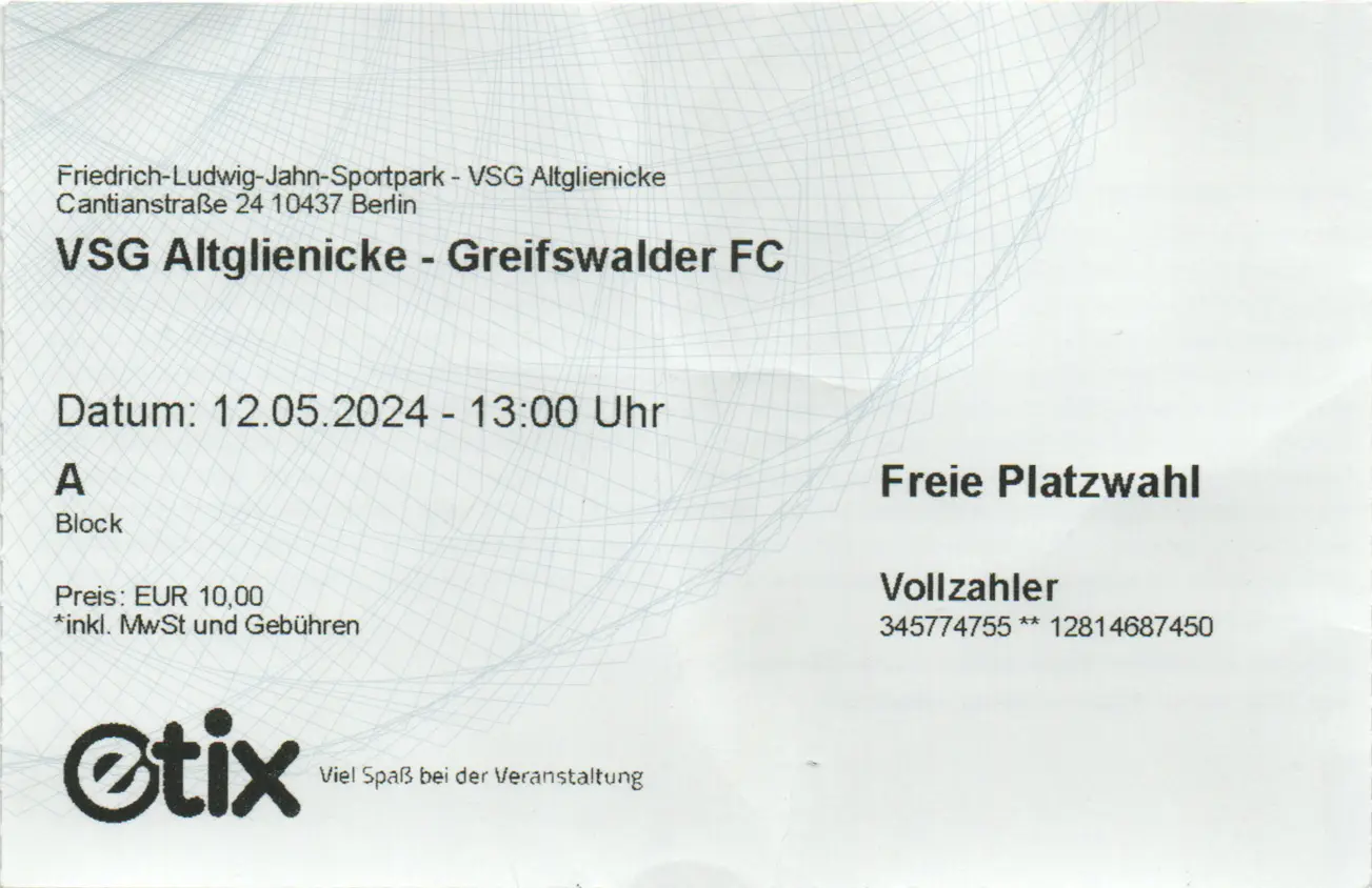 Ich stehe jetzt hier im GFC-Trikot im Stadion und weiß trotzdem nicht, ob ich wirklich möchte, dass Greifswald aufsteigt. Denn ich bin mir nicht sicher, ob sie das finanziell verkraften. Sie haben die Lizenzunterlagen für die 3. Liga eingereicht, aber ich bin sicher, das würde ein Kraftakt werden. Wobei noch nicht einmal klar ist, ob sie überhaupt im heimischen Volksstadion spielen dürften. Es fehlt eine Rasenheizung, stärkeres Flutlicht und vor allem ausreichend Zuschauerkapazität. Es sind mindestens 2000 Sitzplätze erforderlich, von denen die Hälfte überdacht sein muss. Weder gibt es aktuell annähernd so viele Sitzplätze, noch irgendein Dach. Aus meiner Sicht muss sichergestellt sein, dass ein Aufstieg nachhaltig zu stemmen sein wird. Also selbst, wenn alles für die 3. Liga gepimpt wird, darf es nach einem (wahrscheinlichen) Abstieg nicht zur Kostenfalle werden. Im Gegensatz zu Greifswald ist in Cottbus die notwendige Infrastruktur vorhanden. Stadion und Umfeld sind Profi-erfahren. Eigentlich haben sie es auch mal wieder verdient. Na ja, ich würde mich freuen, wenn Greifswald es schafft und vertrauen, dass sie die Herausforderung meistern. Und wenn Greifswald es nicht schafft – auch gut. Wenn sie dann so weiter arbeiten, sich Schritt für Schritt weiterentwickeln, ist vielleicht ein Aufstieg in drei bis fünf Jahren gesünder.Das Greifswalder Spiel sah heute jedenfalls nicht nach Aufstieg aus. Altglienicke war klar besser und hat ein paar der vielen Chancen genutzt. Zur Pause lag Greifswald 0:2 hinten. In der zweiten Halbzeit kamen sie durch einen geschenkten Elfmeter nochmal ran, aber fingen sich auch dann erneut einen Gegentreffer. Vor allem die Abwehr war echt wackelig. Na ja, das war über 90 Minuten nix. Mit der Greifswalder Niederlage hätte Cottbus zeitgleich vor stattlicher Heimkulisse von knapp 20.000 Zuschauern den Aufstieg sichern können. Doch nach einer guten Stunde lagen sie im eigenen Stadion 0:3 (!) gegen Luckenwalde hinten. Typisch für diese Saison hat Cottbus wieder eine Aufholjagd gestartet und am Ende noch ein 3:3 erreicht. Damit hat Cottbus den Vorsprung auf drei Punkte vor Greifswald ausgebaut, hat aber ein schlechteres Torverhältnis. Und somit ist die Abstiegsfrage auf den letzten Spieltag vertagt. Auch gut. Denn da werde ich im Volksstadion sein und so geht es da noch um etwas.