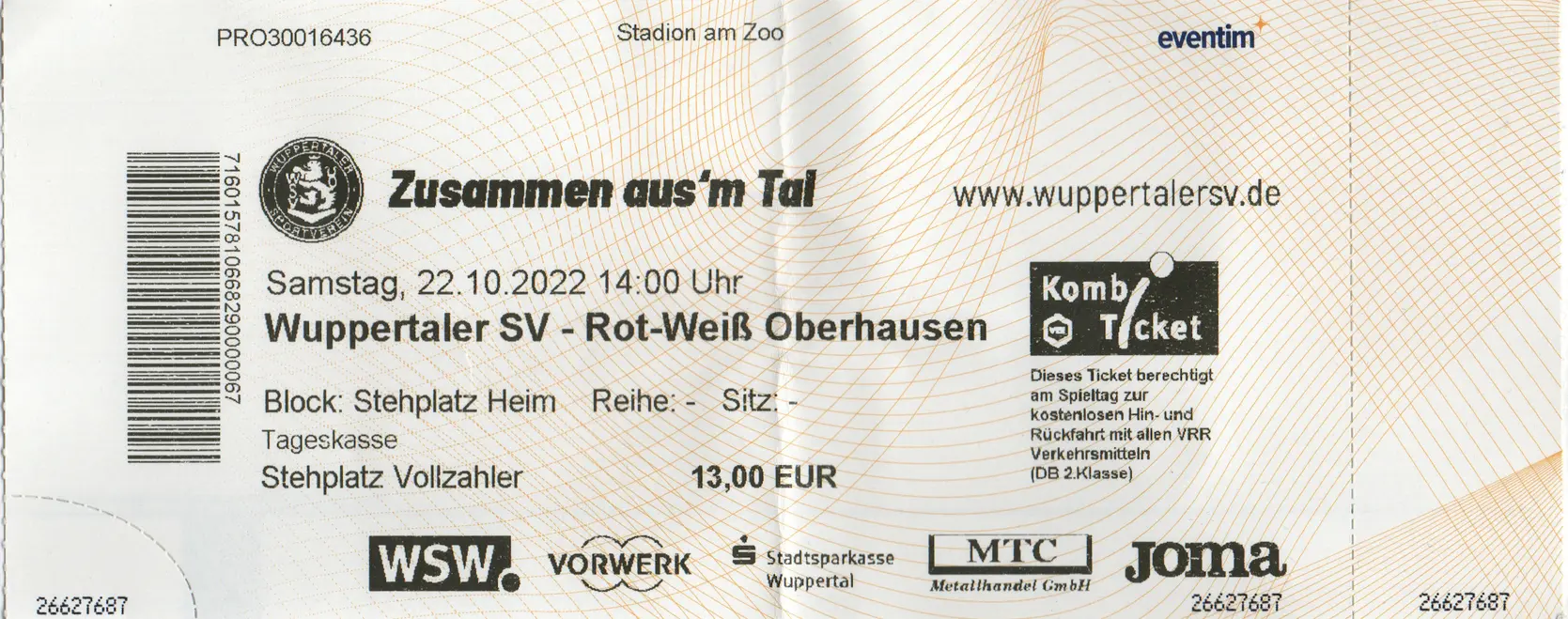 Es war mein erster Besuch im Stadion am Zoo, d.h. es war ein weiterer Ground in meiner Sammlung. Er war: